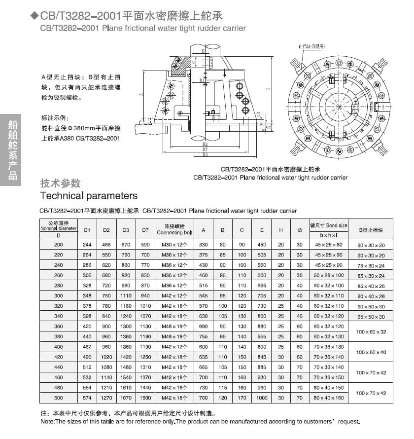 Standard Compliance: Fully adheres to the CB/T3282-2001 standard, ensuring compatibility and interchangeability with most marine rudder systems.