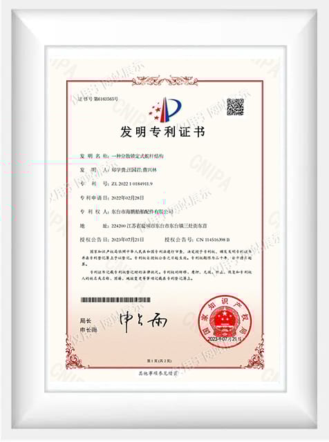 Dongtai Haipeng Ship Fittings Co., Ltd. holds 67 patented technologies, covering structural innovation, polymer materials, sealing and anti-corrosion and other fields. It has been certified as a national high-tech enterprise and has won provincial technical awards. Its products have passed the certification of classification societies such as CCS and BV. It provides high-reliability accessories solutions for global ships with national standards and core technologies.